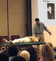 Dr. Pearl demonstriert mit Hilfe eines Freiwilligen aus dem Publikum, wie die Energie empfangen wird.